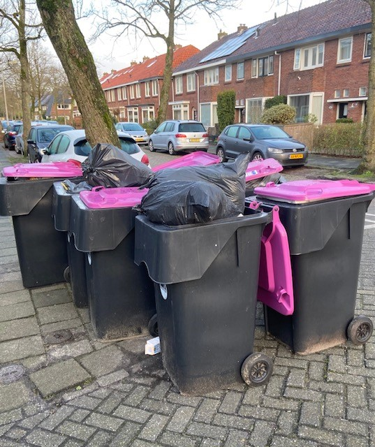 Volgepropte afvalcontainers in de wijk Eigen foto